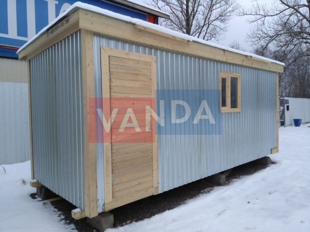 Существует и металлический вариант строительных бытовок, их еще называют блок-контейнерами. Как и деревянные аналоги, они имеют раму, только металлическую. Стены их состоят из сэндвич - панелей или профильных листов. Крыша оцинкована, помещение так же имеет утеплитель, звукоизоляцию, для этой цели предусмотрен небольшой зазор между крышей и основным потолком.